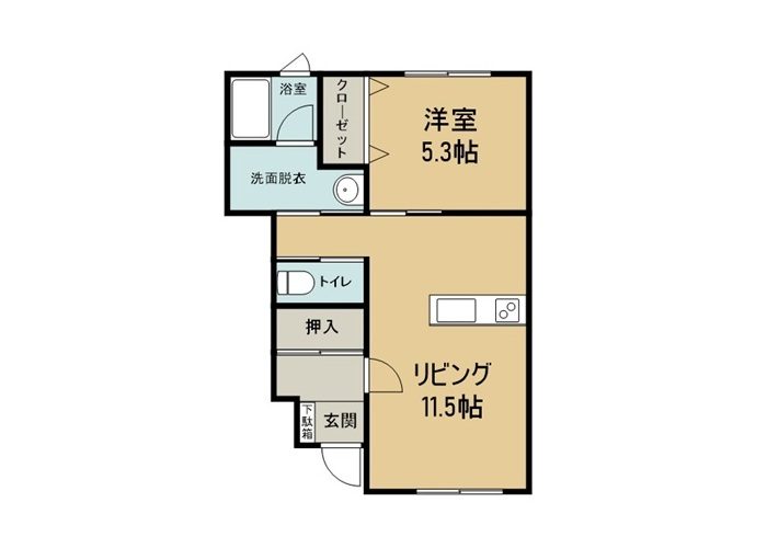 | 間取り詳細 | 1LDK(LDK:11.5帖・洋:5.3帖) |