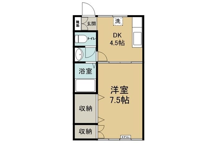 間取り詳細1DK(DK:4.5帖・洋:7.5帖)